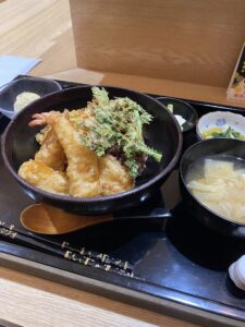 玄米の野菜天丼御膳を食べてエネルギー補充です!